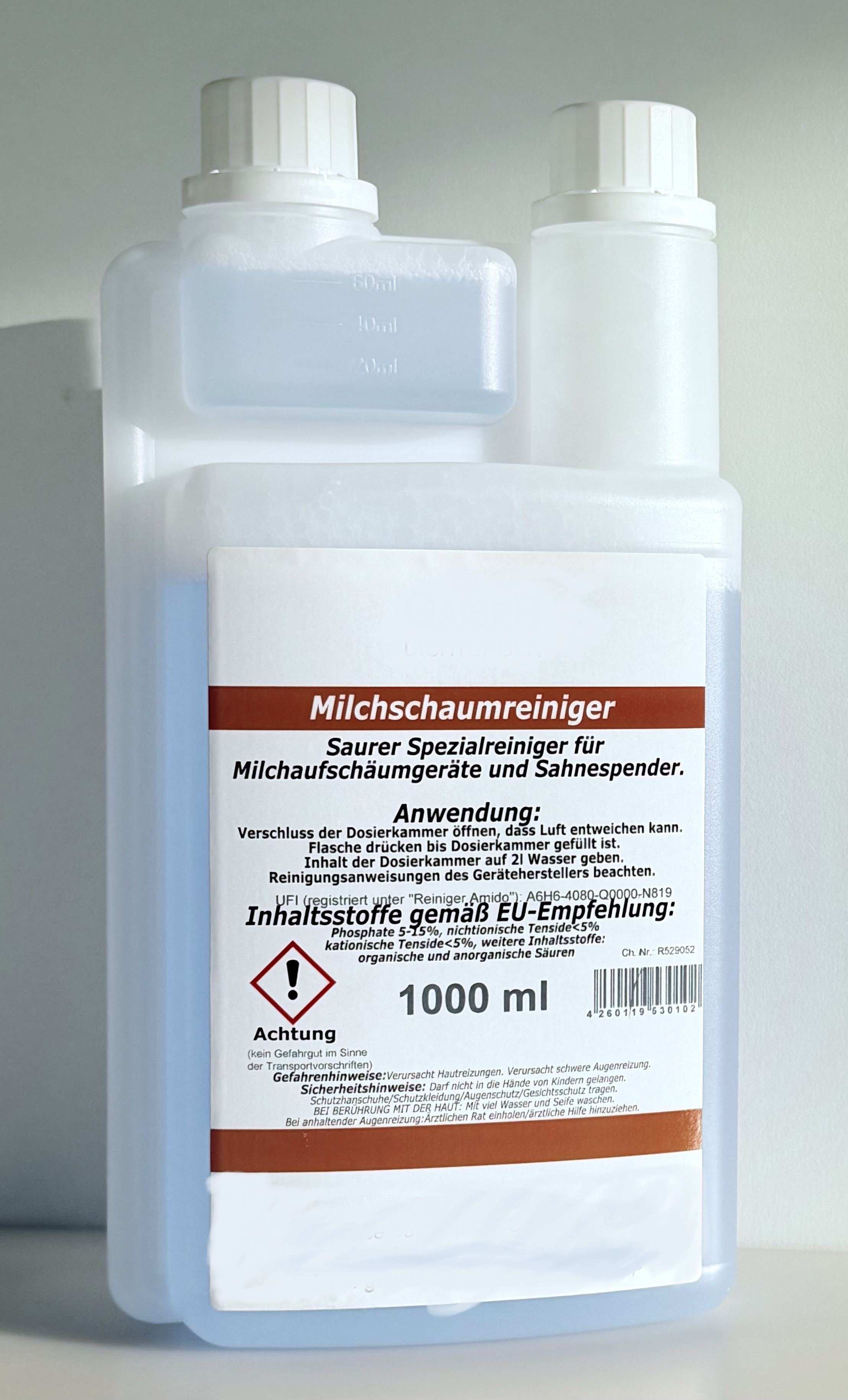 Unser Reiniger für Milchaufschäumer ist ein hochkonzentrierter Maschinenreiniger zur Entfernung von Milchfetten, Milchstein und hartnäckigen bzw. sonstigen Verunreinigungen in Milchaufschäumern und Sahneautomaten. Unangenehme Gerüche werden wirksam beseitigt.
